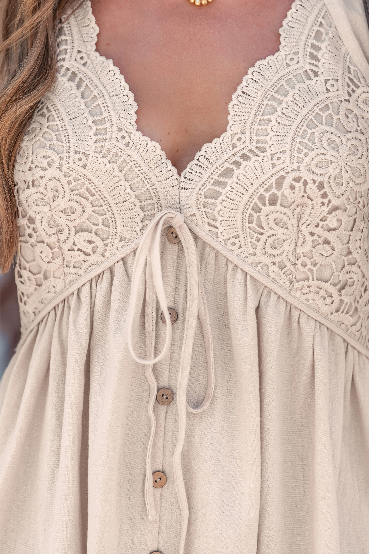 Ravviva il tuo guardaroba con il mini abito beige Sunlit! Le maniche lunghe con scollo a V e la lunghezza mini lo rendono giocoso ma raffinato.