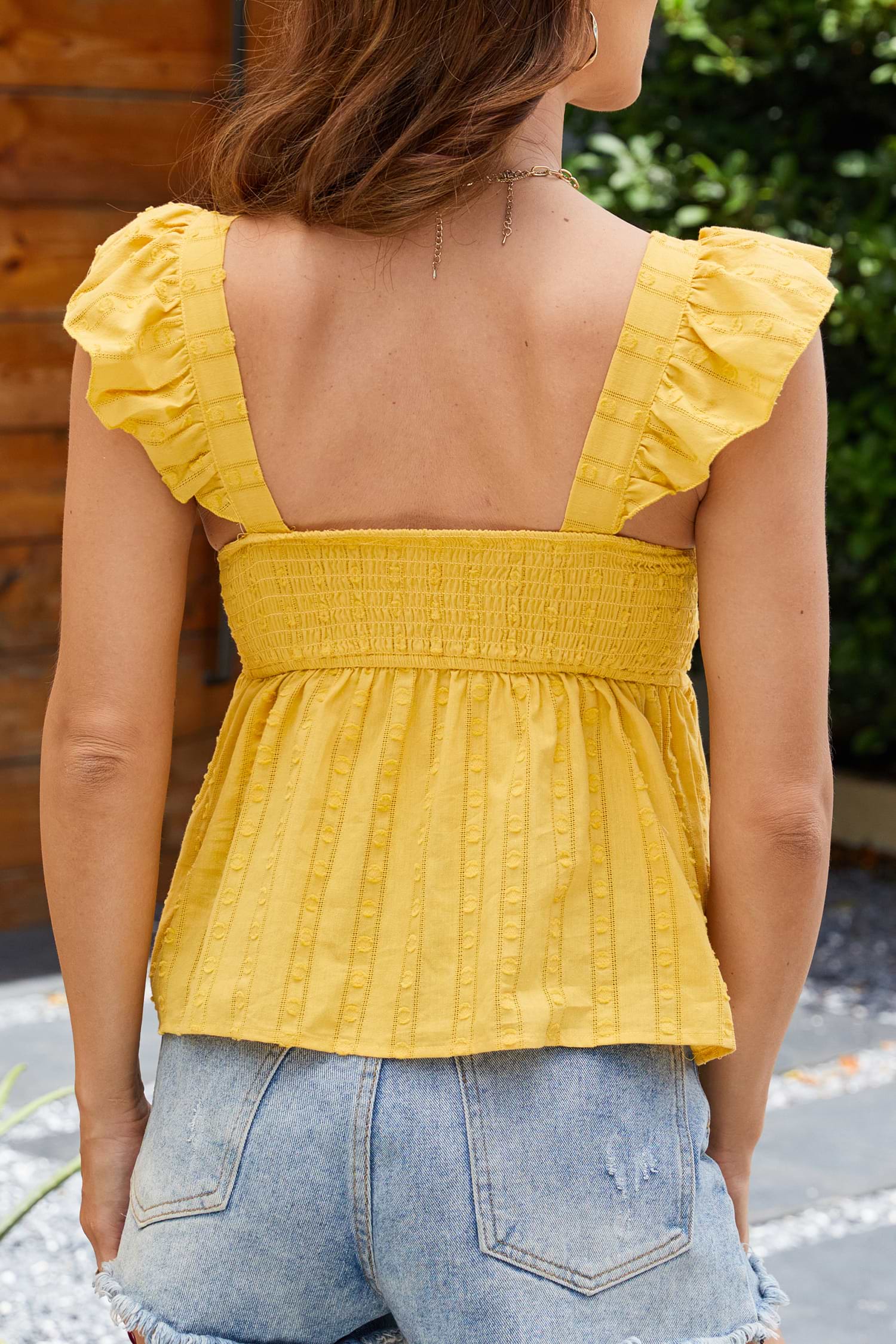 Top svolazzante intrecciato sul davanti con scollo a cuore giallo sole