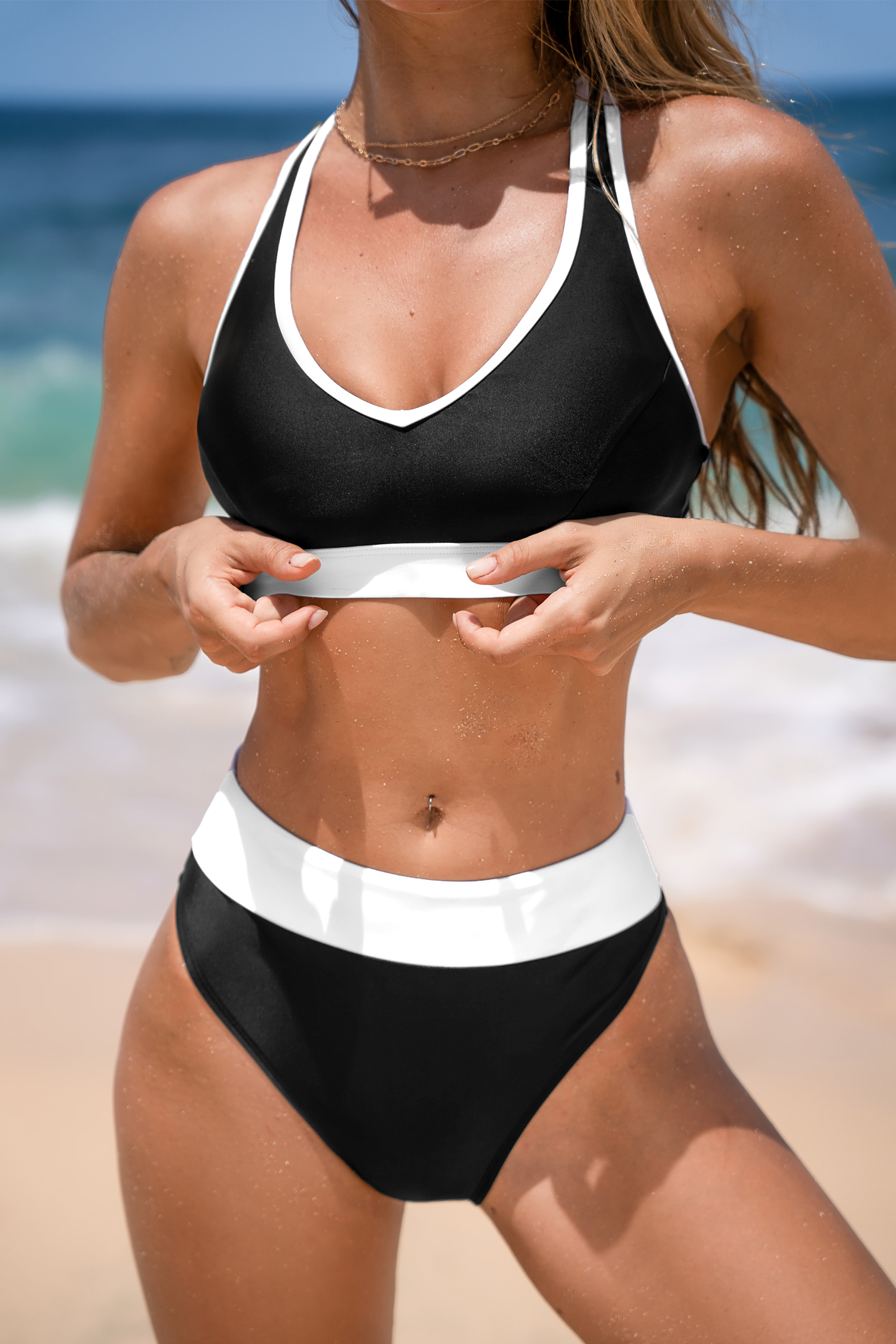 Set top bikini con scollo a V e slip a vita alta Super Bloom
