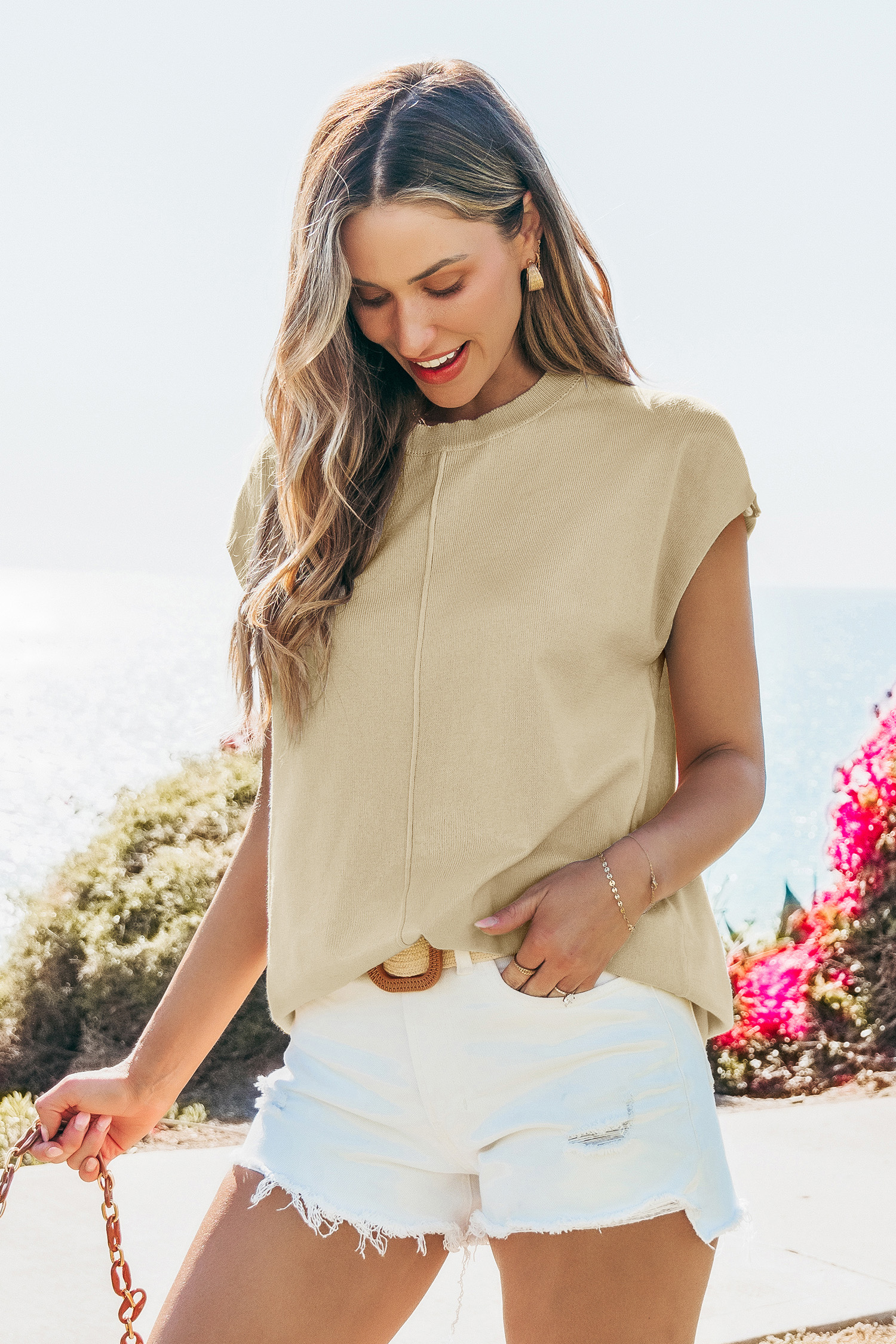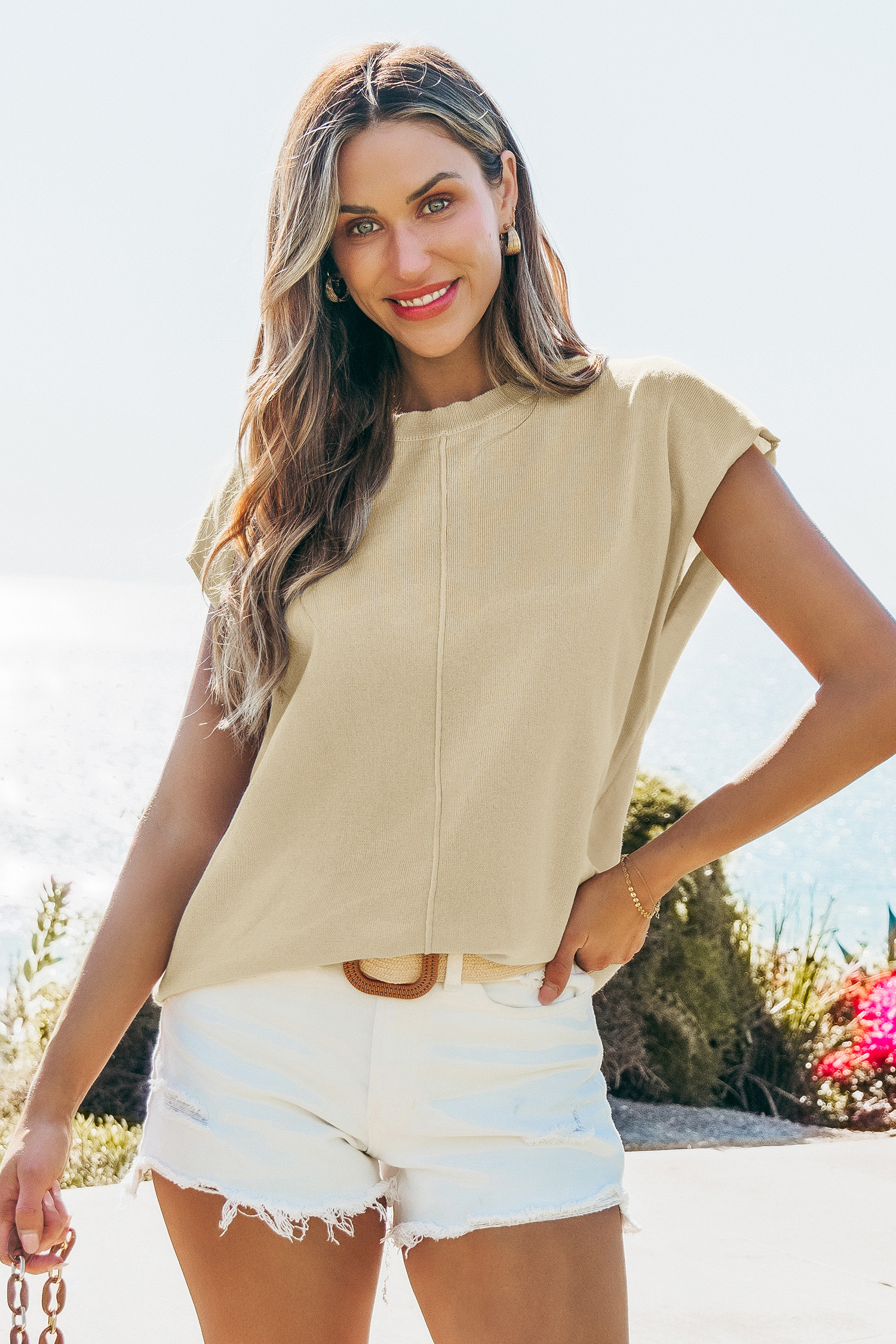Il top beige lavorato a maglia perfetto