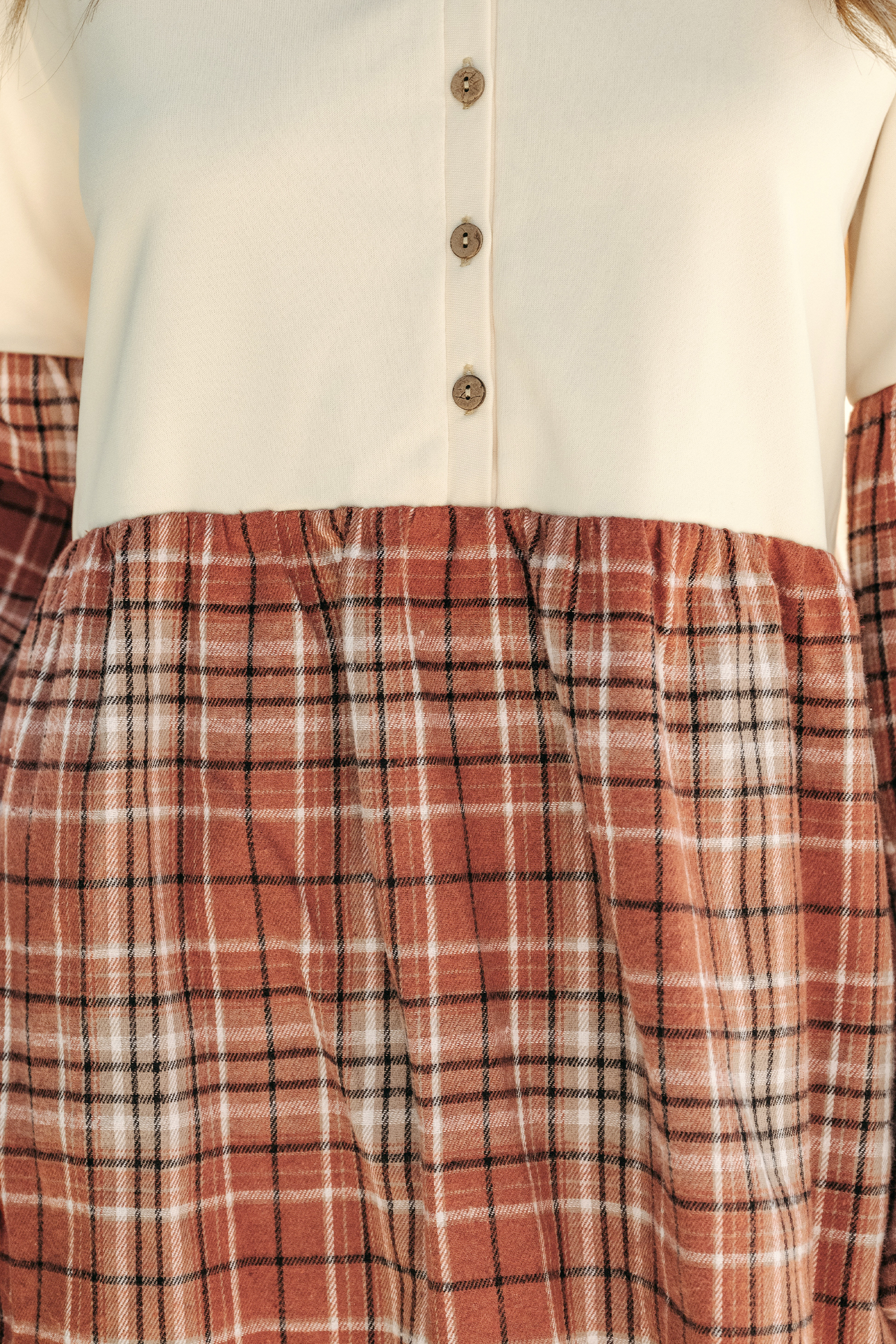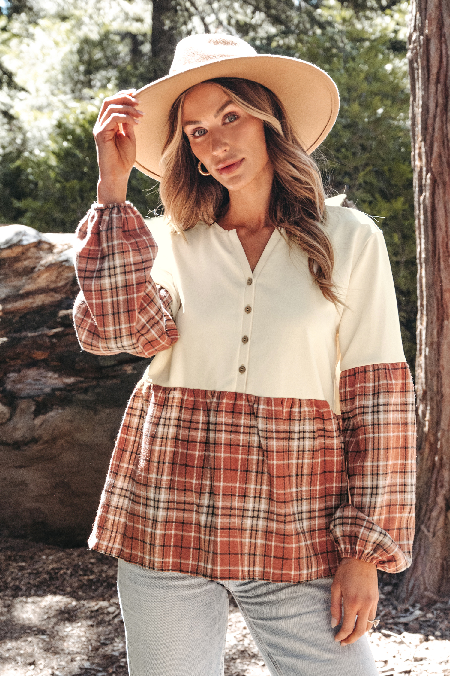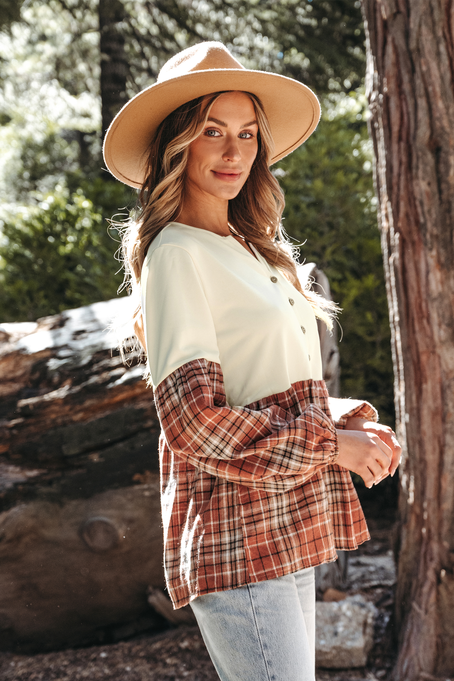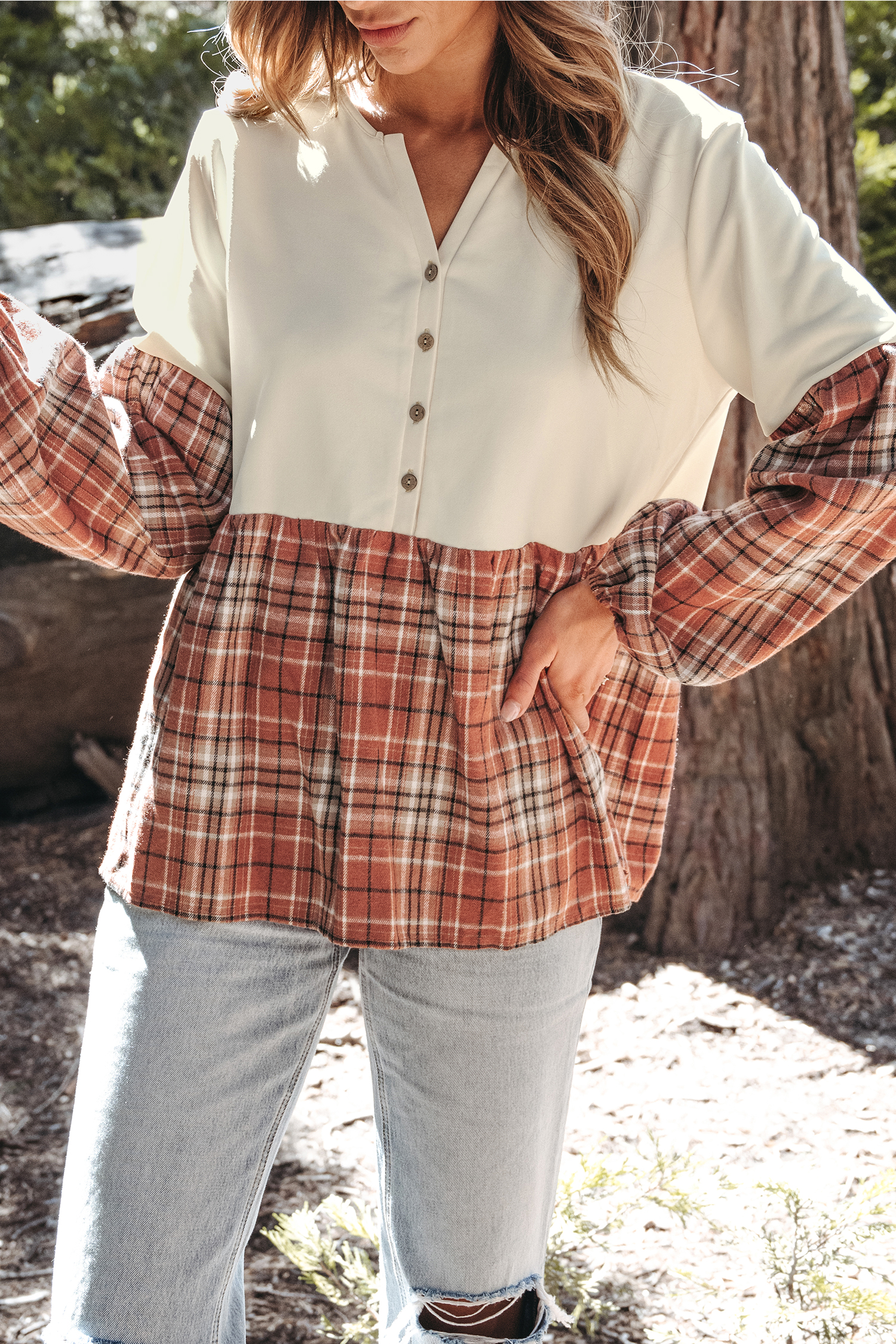 Aggiungi un tocco di fascino classico al tuo outfit con il nostro top abbottonato scozzese con scollo a V! Caratterizzato da un intramontabile motivo scozzese e da un elegante scollo a V con bottoni, questo top offre un look versatile e chic.