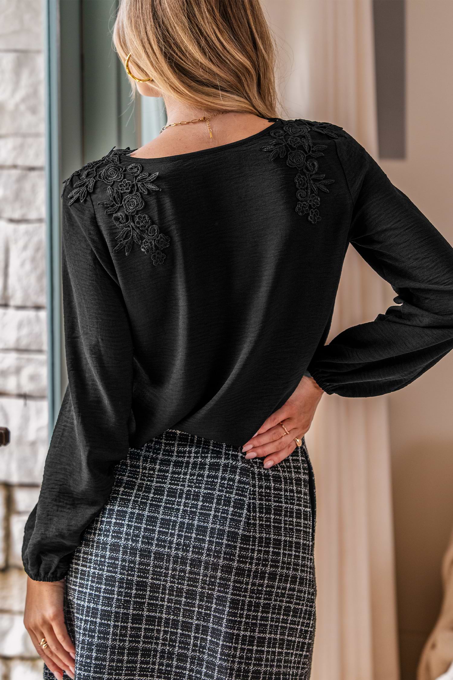 Il top nero True Colors è semplice e sbarazzino, perfetto per ogni occasione! Lo scollo a V e le maniche lunghe gli conferiscono un tocco di stile naturale e raffinato.