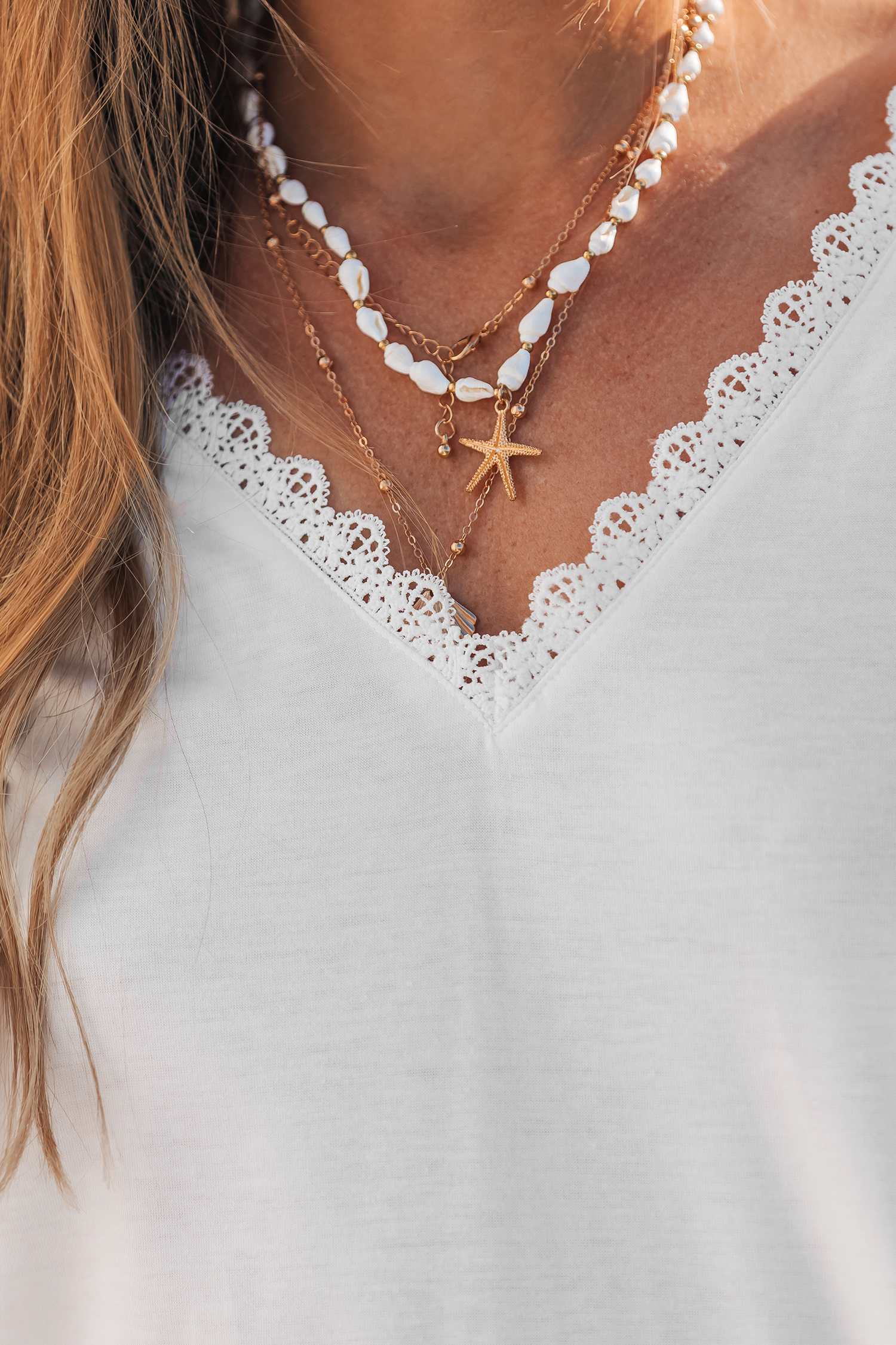 La T-shirt bianca Unexpected è giocosa e chic allo stesso tempo! Le maniche corte, lo scollo a V, i bordi in pizzo e la schiena scoperta le conferiscono un tocco leggermente civettuolo a un classico.
