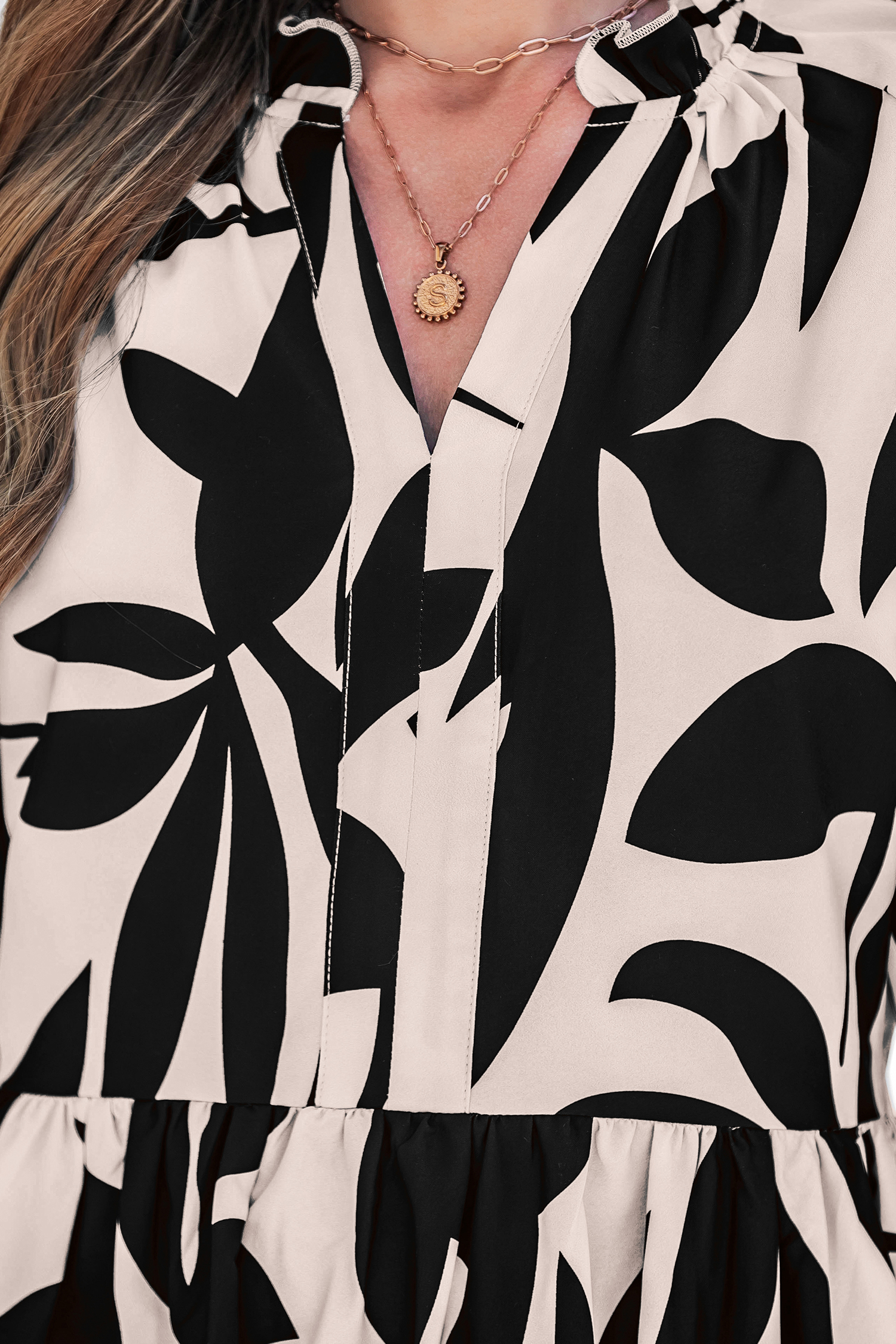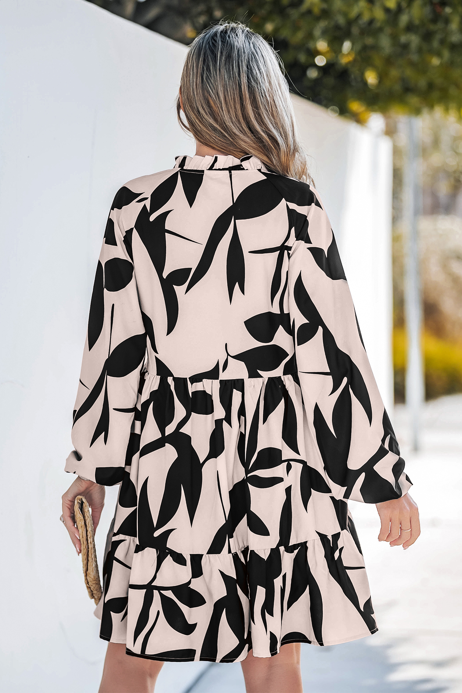 Mini abito con volant e maniche a sbuffo e scollo a V