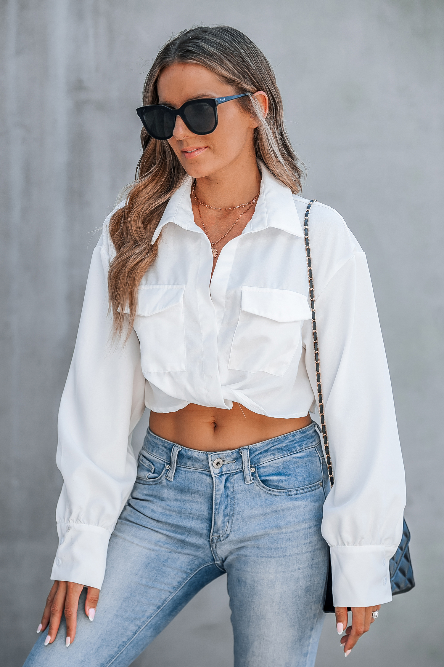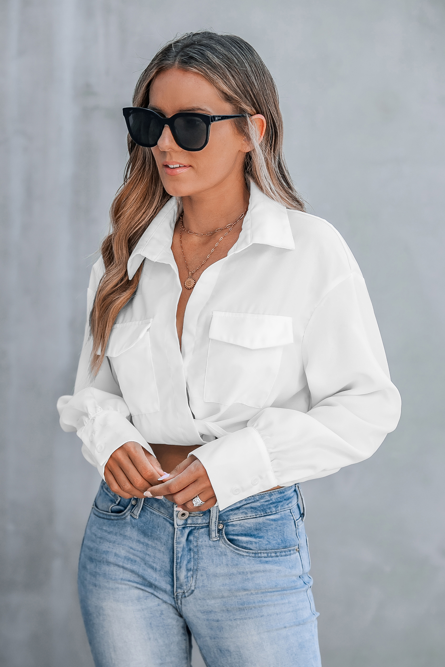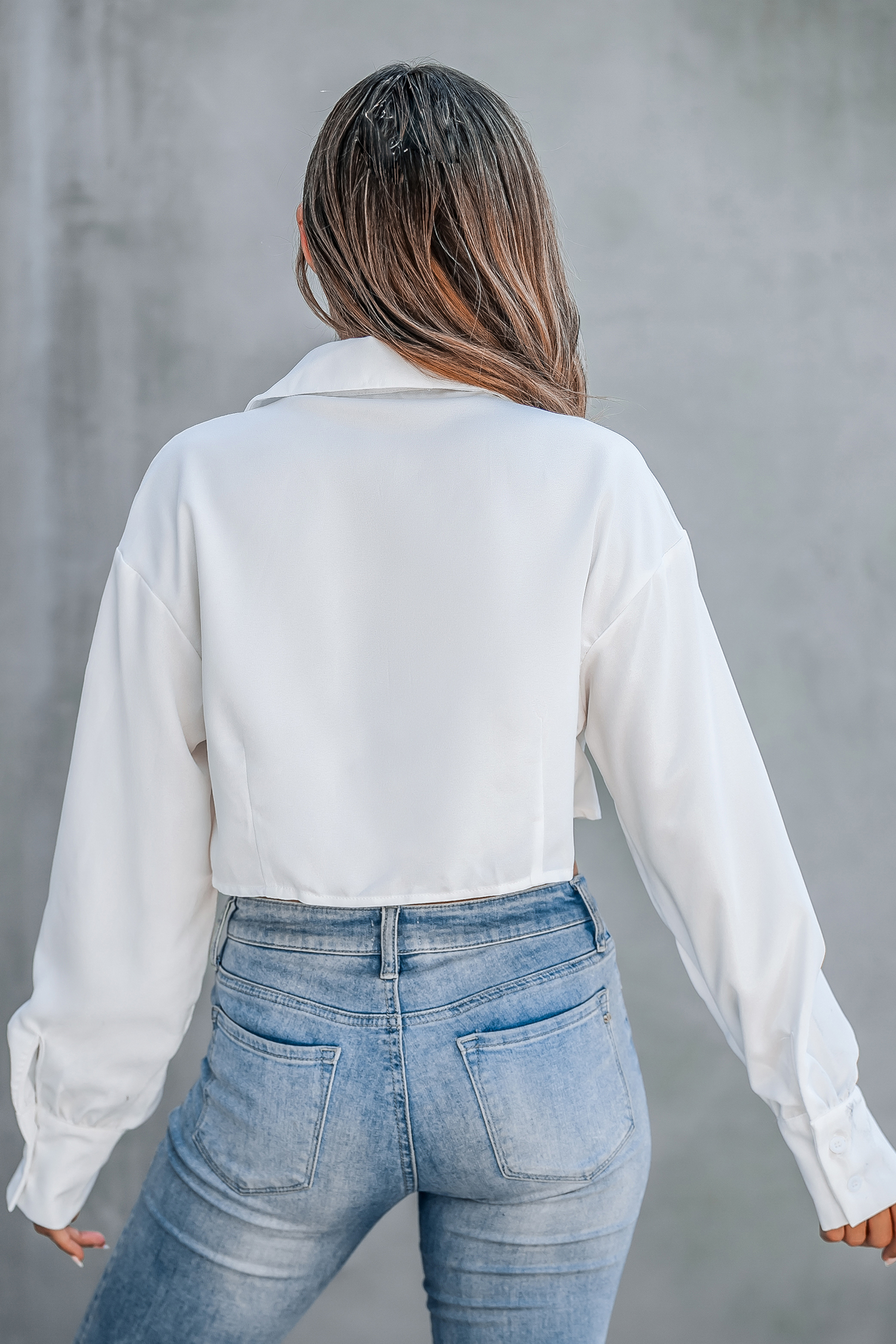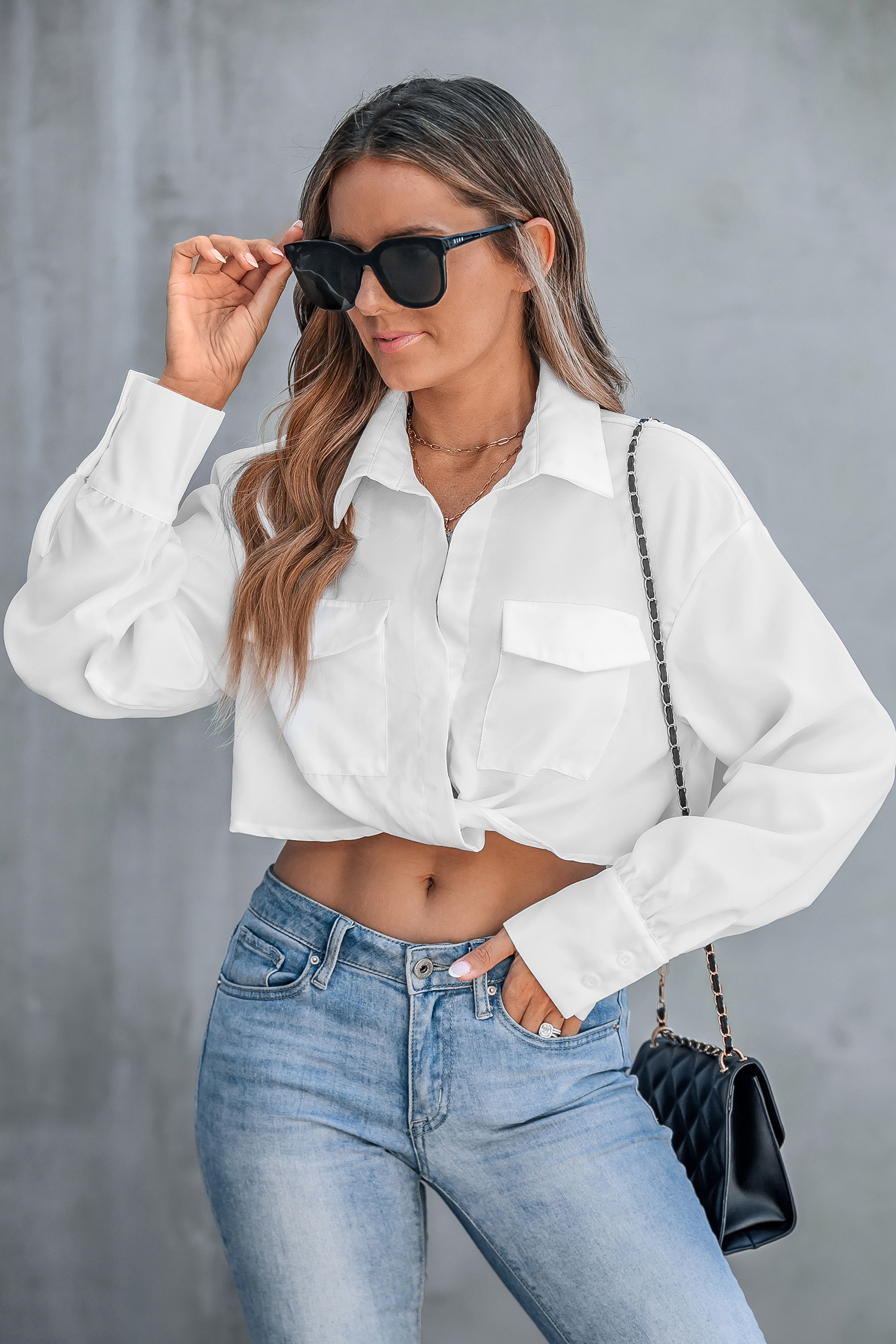 Top corto intrecciato a maniche lunghe con colletto bianco
