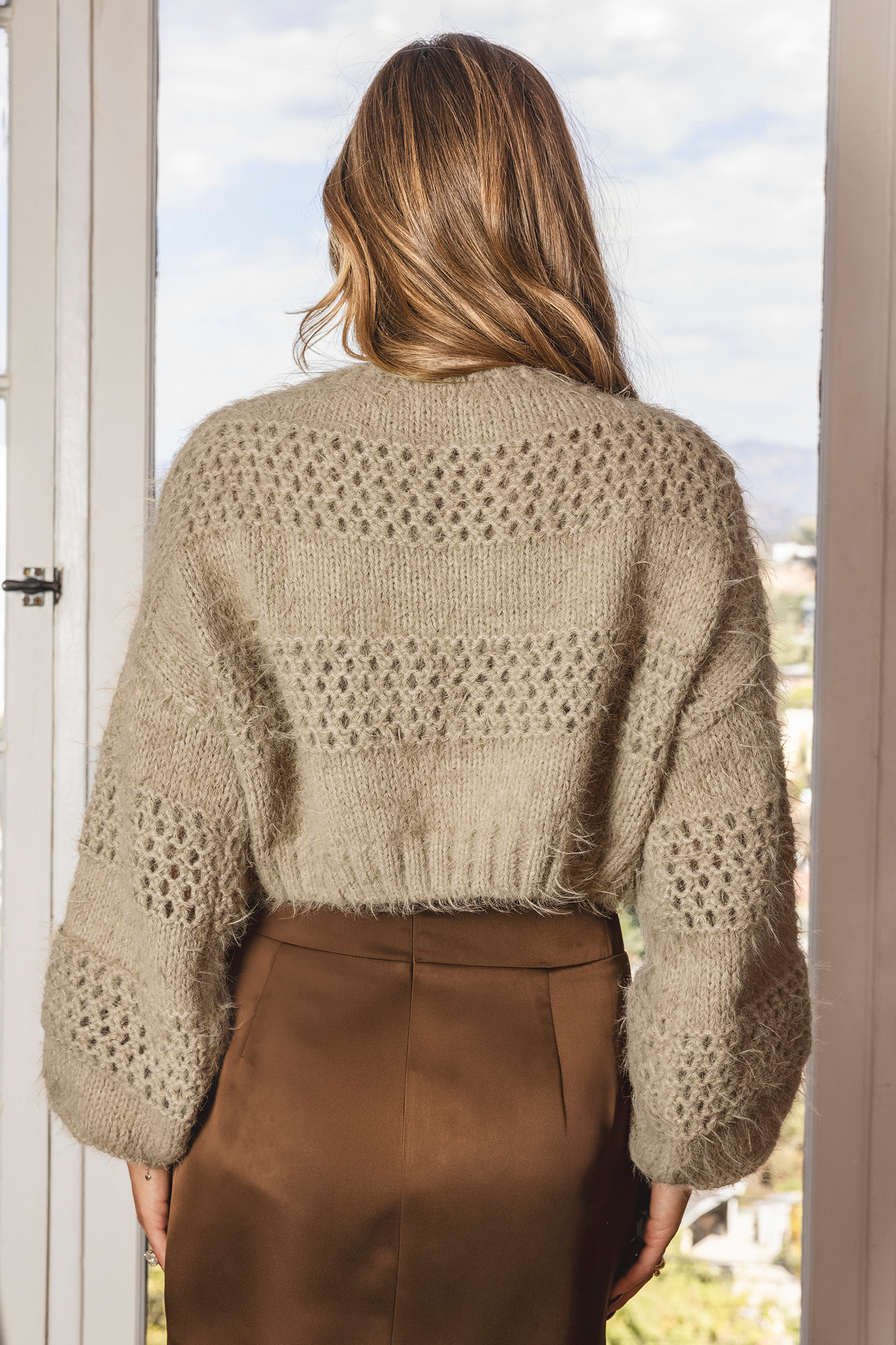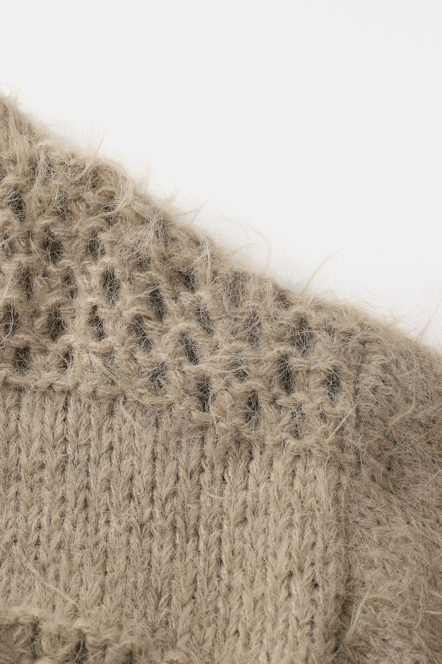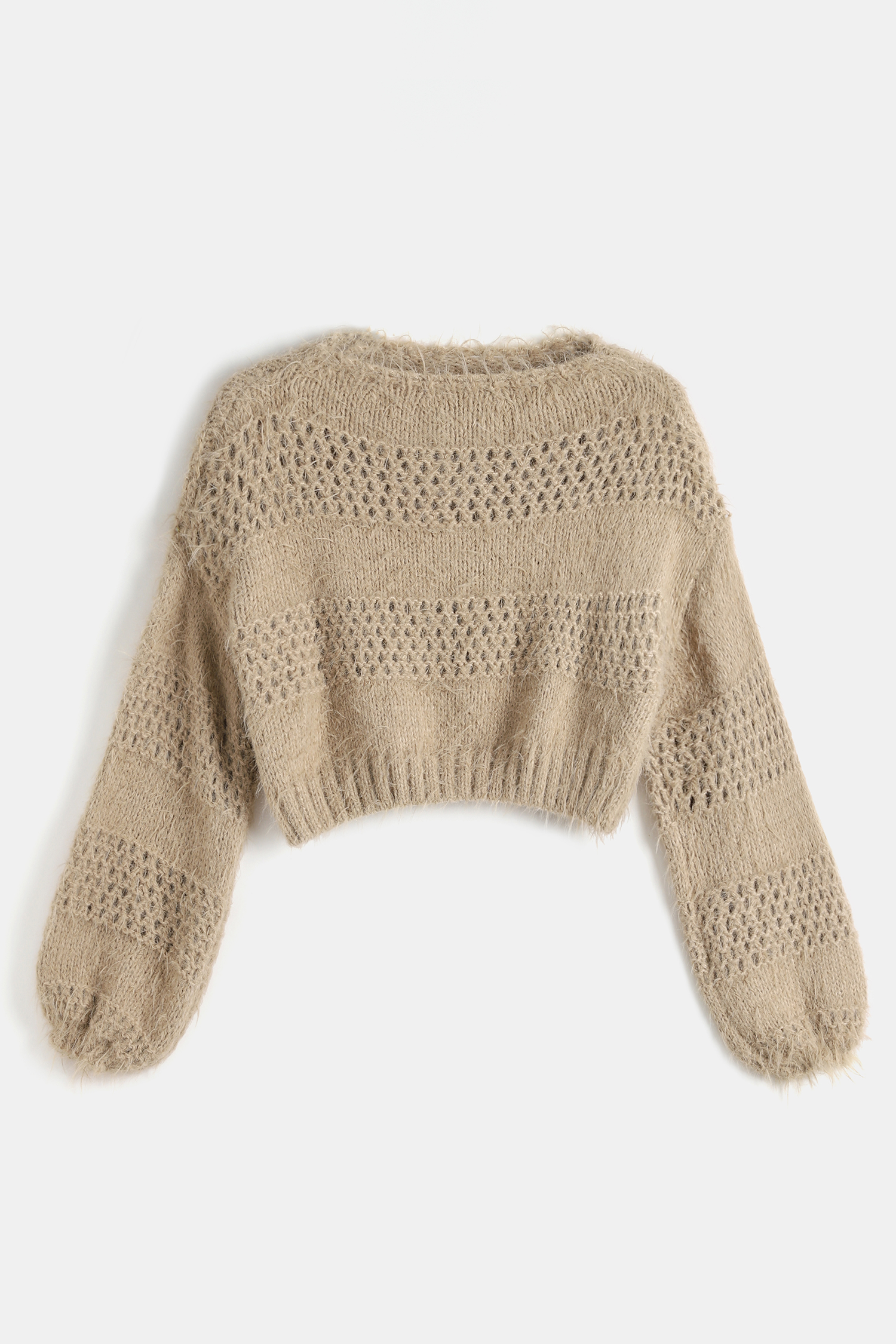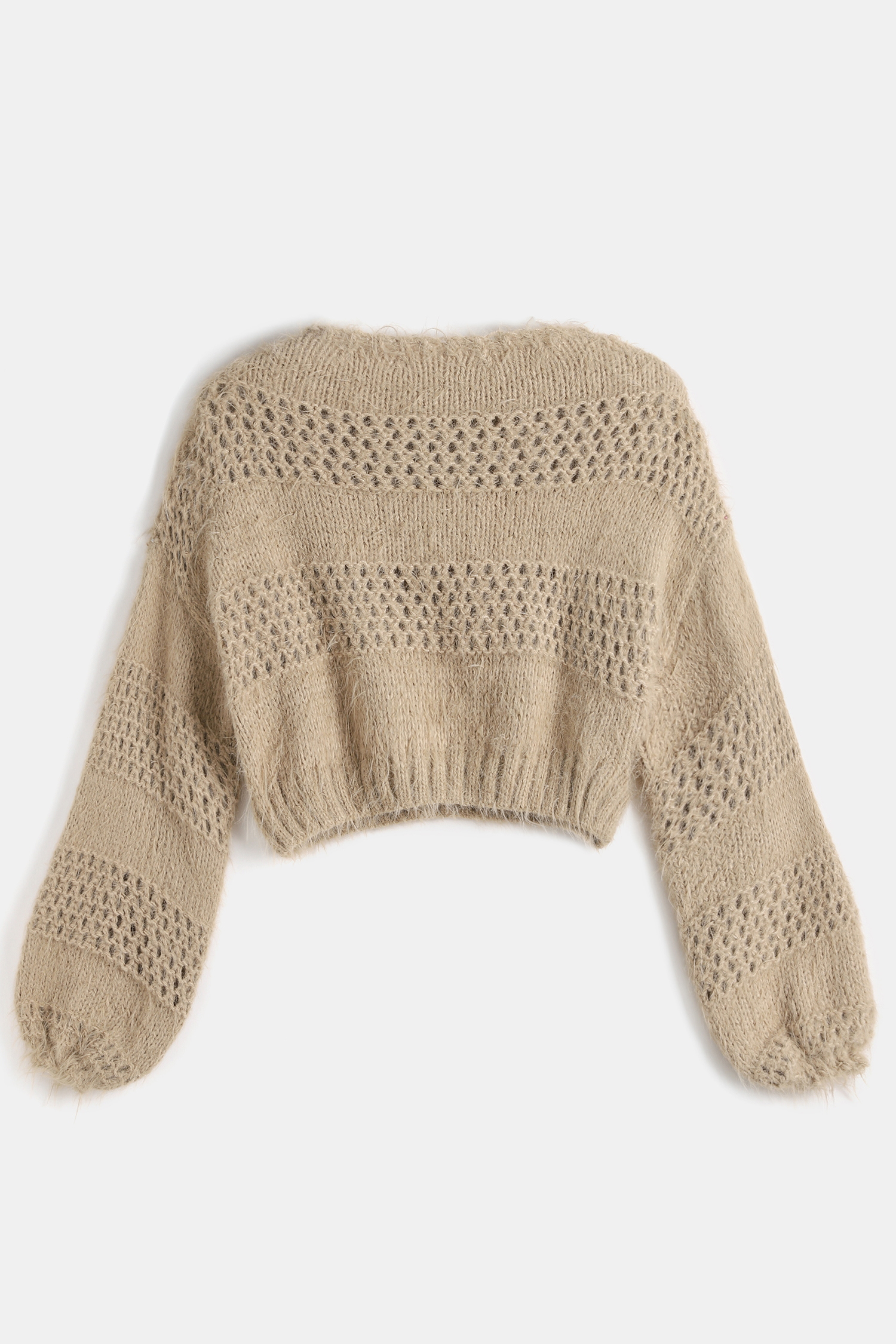 Abbraccia il calore e lo stile con il Camel Fuzzy Cutout Knit Sweater. Questo capo accogliente presenta una morbida texture pelosa che risulta deliziosa sulla pelle, perfetta per le fredde giornate di festa.